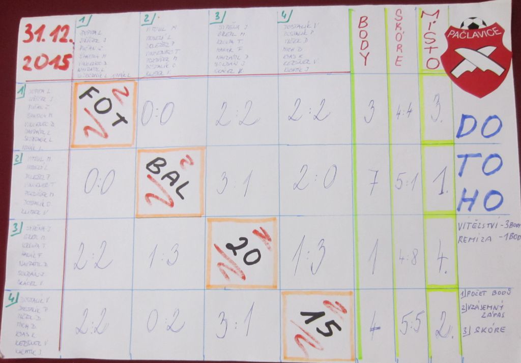 V silvestrovské dopoledne si udělali tradičně dostaveníčko fotbalisté z Pačlavic. Na umělé trávě v Osíčanech se v malé kopané utkalo 29 hráčů ve čtyřech družstvech, což je o deset více než loni. Bohužel, divácká kulisa i letos nebyla hodna významu tohoto prestižního turnaje. Po fotbálku zašli všichn