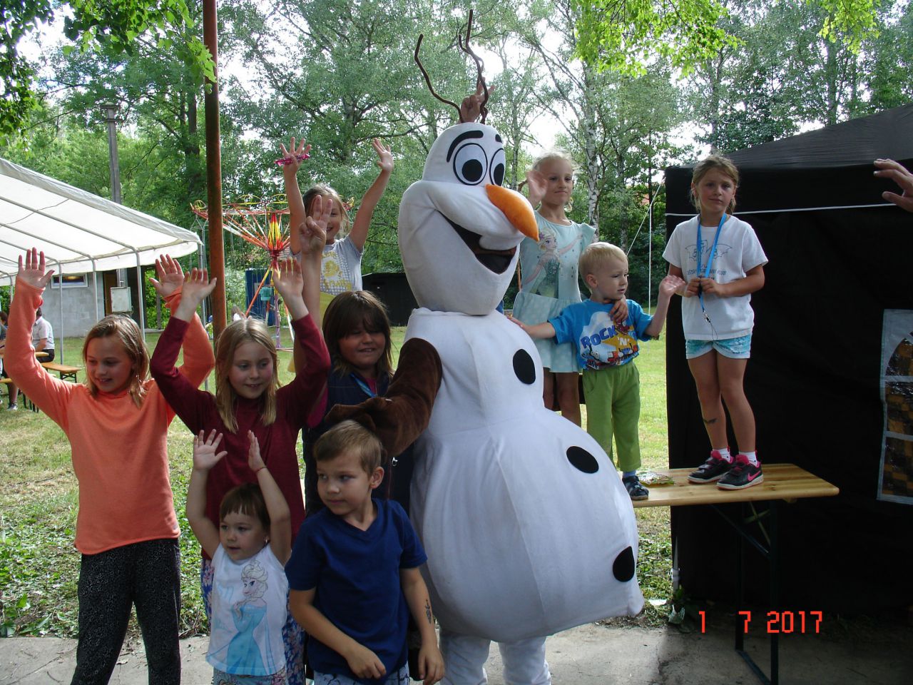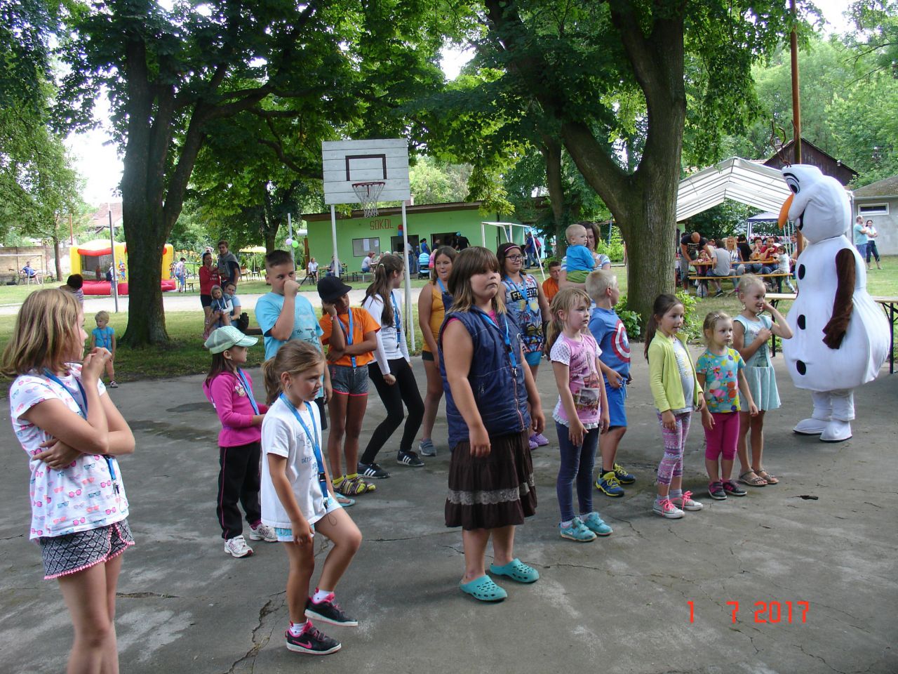 Dětské odpoledne se i letos uskutečnilo na Sokolské zahradě v Pornicích, a to v sobotu 1. července 2017 u příležitosti zahájení prázdnin za krásného slunného počasí. Naše rozhodnutí udělat změnu a pozvat na tuto akci agenturu, která se zabývá pořady pro děti bylo správné. Sobotní odpoledne s DJ a se sněhulákem Olafem z Ledového království přineslo spoustu her, soutěží, zábavy i také poučení. Součástí programu byl také skákací hrad a dětský kolotoč, kde se všechny děti vydováděly. Čekala na ně sladká odměna, občerstvení a bohatá tombola. Zaplněná sokolská zahrada nám byla odměnou. Poděkování patří všem zúčastněným a sponzorům.